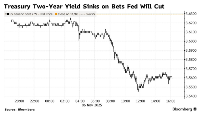 2年期美国国债收益率下降7个基点至3.56%