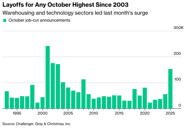 原文链接: https://www.bloomberg.com/news/articles/2025-11-06/ai-revolution-prompts-most-october-us-layoffs-in-over-20-years?srnd=phx-markets