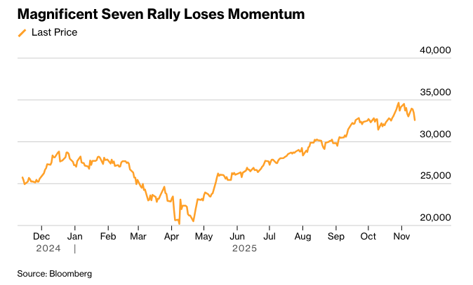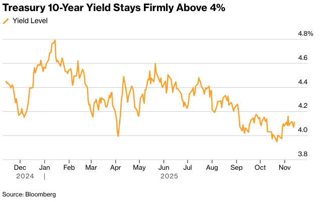 随着对政府关门结束的乐观情绪被市场消化,对估值的担忧浮出水面,引发了对高涨科技巨头的抛售。一些市场观察人士指出,表面之下存在资金轮动到更具防御性股票的迹象。这是标普500指数在两周内第三次下跌超过1%。比特币跌破10万美元,自10月初以来下跌超过20%。
