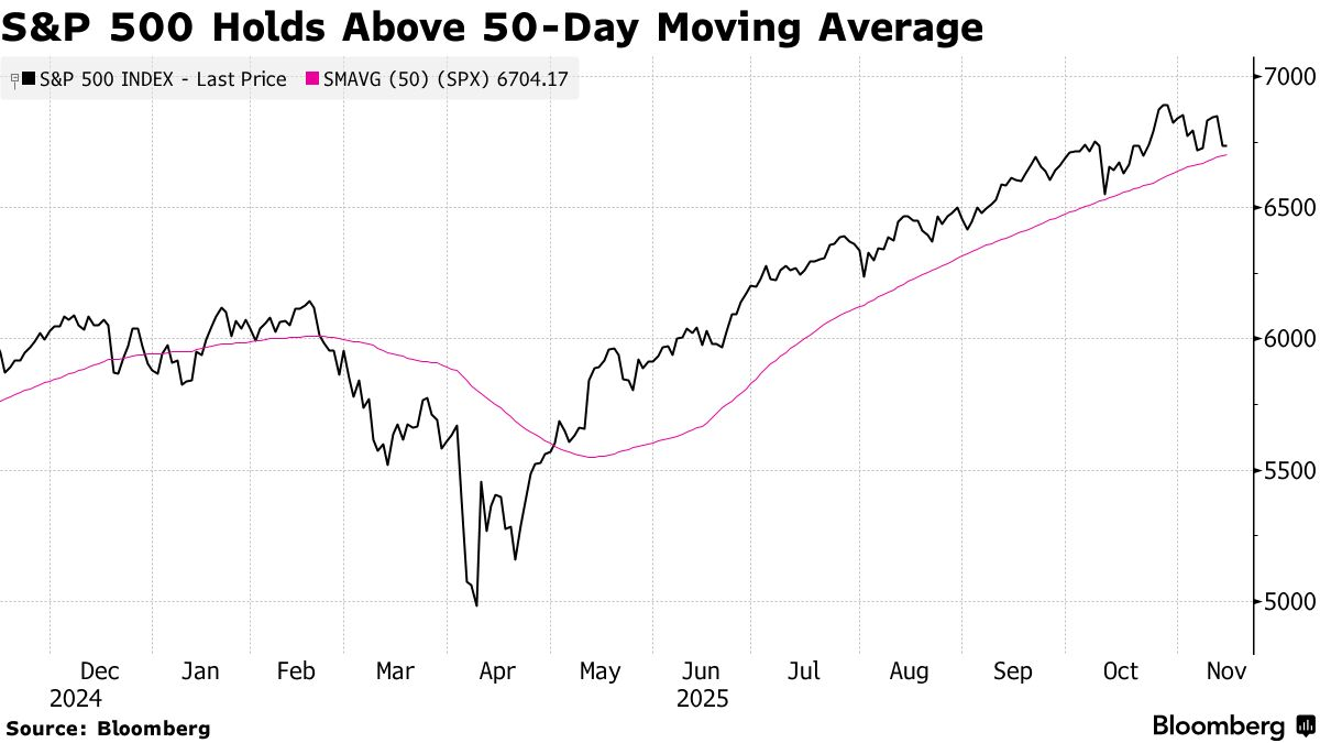 标普500指数在短暂跌破50日移动平均线后,守住了这一水平。一项衡量超大型股的指标停止了三天的下跌。