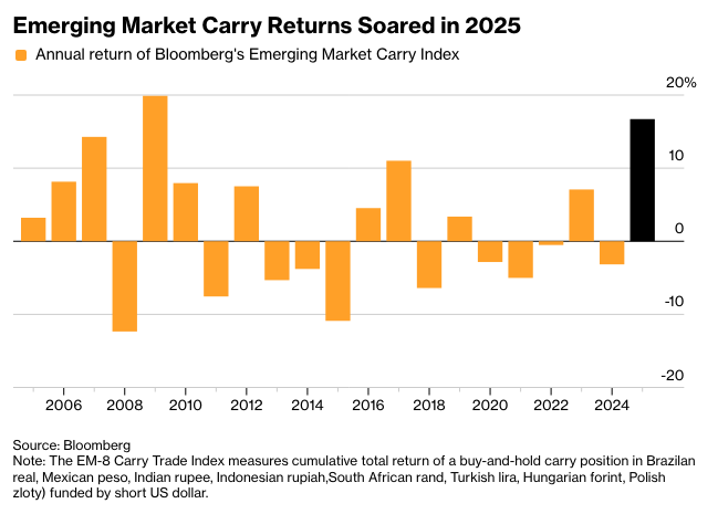 原文链接: https://www.bloomberg.com/news/articles/2025-12-14/carry-trade-revival-that-electrified-em-spurs-optimism-for-2026?srnd=phx-markets