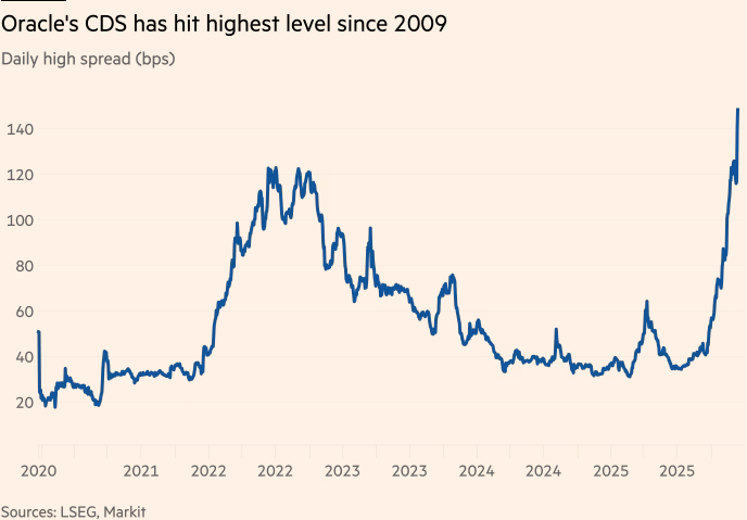 一家大型美国信贷投资公司的高级管理人员也表达了同样的观点,指出“单一名义的 CDS 交易显著增加,人们越来越多地使用大型科技公司或特别是 Oracle 和 Meta 的篮子交易。”