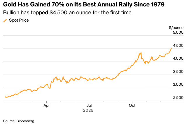 随着年底临近,一些交易员开始获利了结,此前贵金属市场经历了一轮猛烈的上涨,但即使如此,黄金在2025年仍然上涨了近70%。铂金的价格已经上涨了一倍以上。