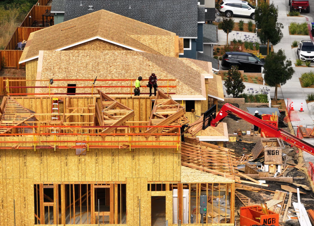 去年在加州赫拉克勒斯建造新房的建筑工人。JUSTIN SULLIVAN/GETTY IMAGES