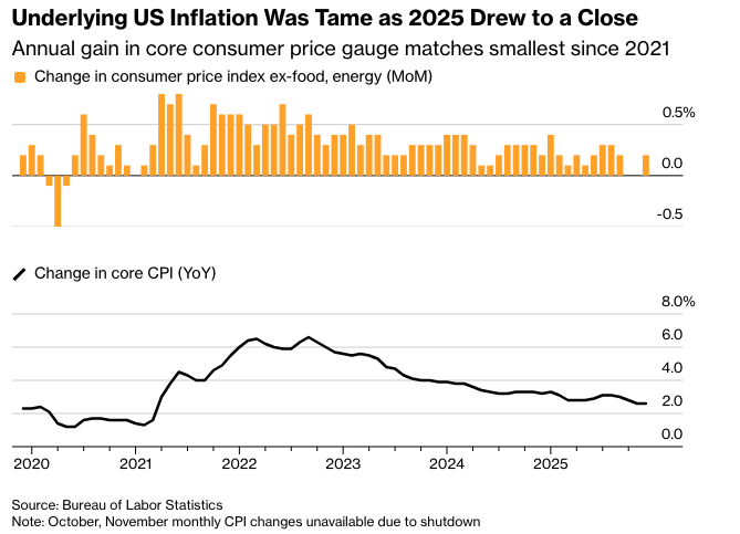 12月核心消费者价格指数(CPI),剔除通常波动较大的食品和能源类别后,环比11月上涨0.2%。同比上涨2.6%,与四年来的最低水平持平。