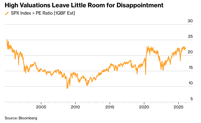 Ameriprise的Anthony Saglimbene表示,高估值倍数可能意味着标普500公司在未来几周需要达到或超过利润预期,并且总的来说,他们可能需要确认或提高当前季度的盈利指引,才能维持股价上涨。