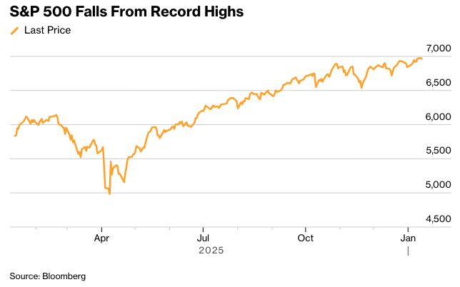 标准普尔500指数跌至6,965点左右。10年期美国国债收益率几乎没有变化,为4.17%。美元上涨0.2%。在特朗普加紧对伊朗的言辞后,油价上涨。