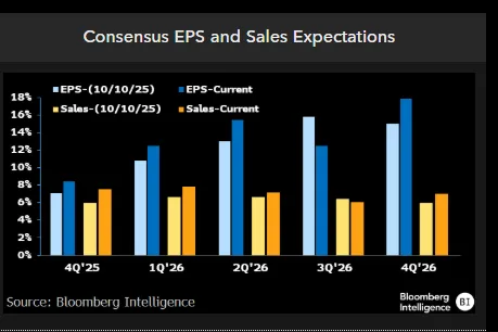 摩根大通以杜布拉夫科·拉科斯-布哈斯为首的策略师表示,在美国公司盈利方面,由于好于预期的销售增长(包括需求和定价)以及利润率,尤其是来自人工智能相关企业的利润率,应该很容易超过适度的预期。