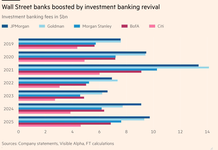 摩根大通于周二公布了财报,是华尔街五大银行中唯一一家在2025年第四季度投资银行业务费用出现下滑的银行,同比下降了5%。