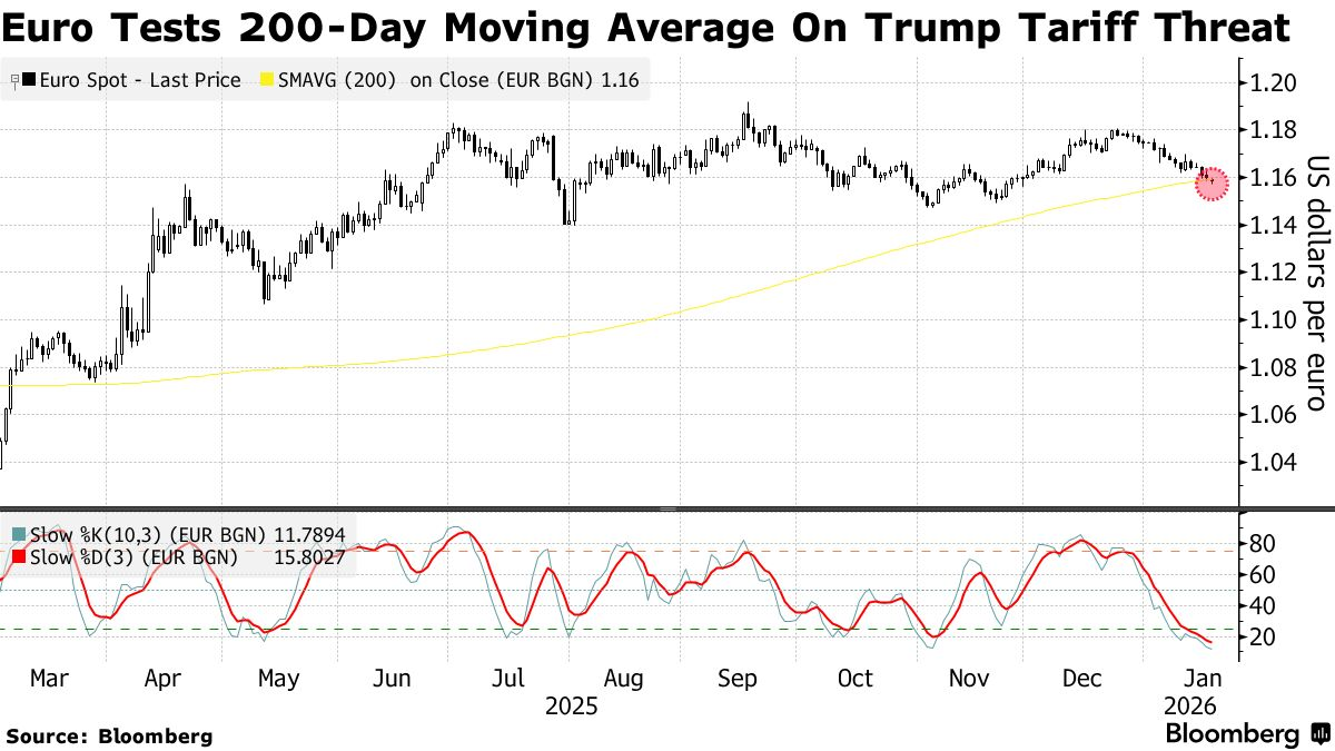 策略师表示,市场目光将转向欧洲开盘,该地区的股市可能首当其冲地承受任何抛售的冲击。德意志银行预计,由于美国依赖欧洲的资本,欧元受到的影响最终可能有限,而其他人则认为特朗普的举动纯粹是一种谈判策略,目的是在本周达沃斯世界经济论坛之前获得筹码。