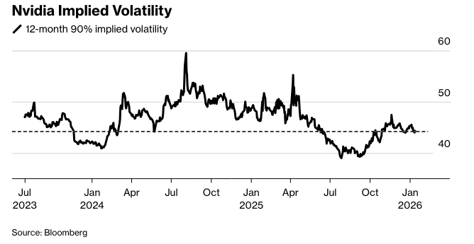 同样,美国银行的策略师建议购买长期深度价外英伟达看跌期权,并进行Delta对冲,押注如果股价下跌,波动性将会上升。