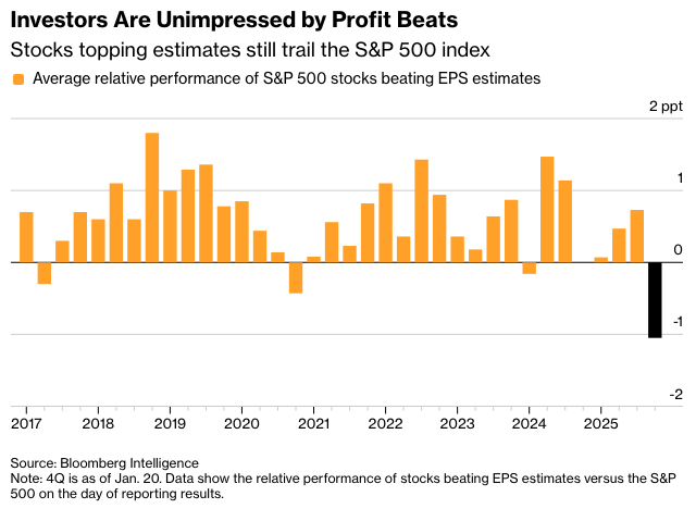 虽然看涨的另一个原因是强劲的企业利润前景,但不为所动的投资者正给出有记录以来最糟糕的股价反应,因为2026年的前景变得不明朗。