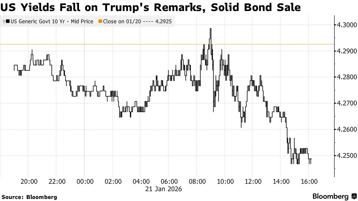 华尔街投机情绪恢复,受助于特朗普对格陵兰的雄心能够找到避免关税的解决方案的希望。股市和债市上涨,随着总统声称与北约达成协议框架,黄金的涨势有所降温。