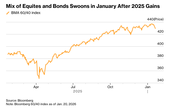 但本周该策略面临压力,股市和债市同步走弱,一度令1月有望创下自4月以来首个下跌月份。4月时,特朗普所谓的“解放日”关税曾震动全球市场。