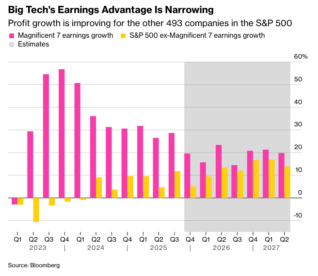 投资者似乎在年初更愿意将部分仓位从人工智能交易中转移出来,重新平衡配置到更多受“实体”经济影响的资产类别、行业和公司,Ameriprise的Anthony Saglimbene表示。