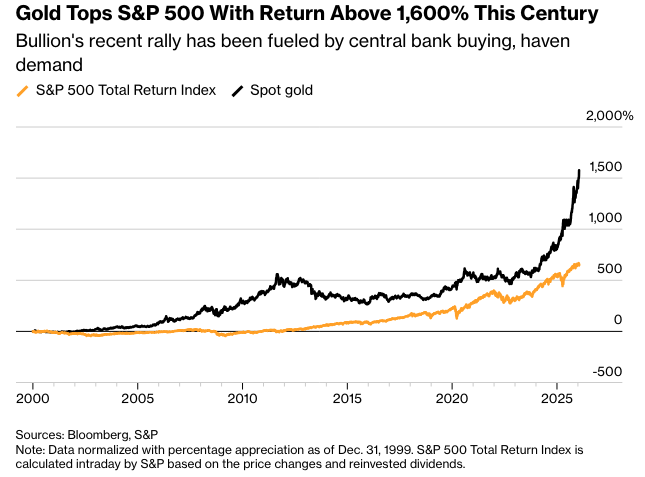 这种贬值交易在2025年末达到顶峰,当时像 Citadel 的首席执行官 Ken Griffin 和 Bridgewater Associates 的创始人 Ray Dalio 这样的著名投资者都指出黄金的上涨是一个警告信号。