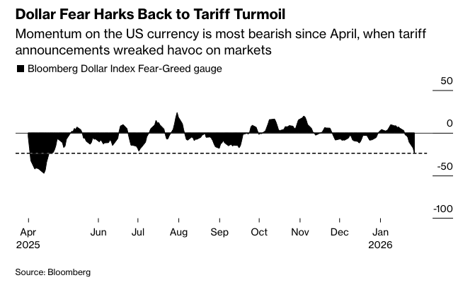 “类似于关税争端高峰期出现的对美元的看跌情绪表明,交易员尚未完全摆脱去年困扰该货币的政策不确定性带来的拖累。尽管这次的风险有所不同,但政策阻力导致疲软的概念对于那些已经得出结论认为现在是时候分散投资、远离美元的投资者来说,是一个熟悉的催化剂。”