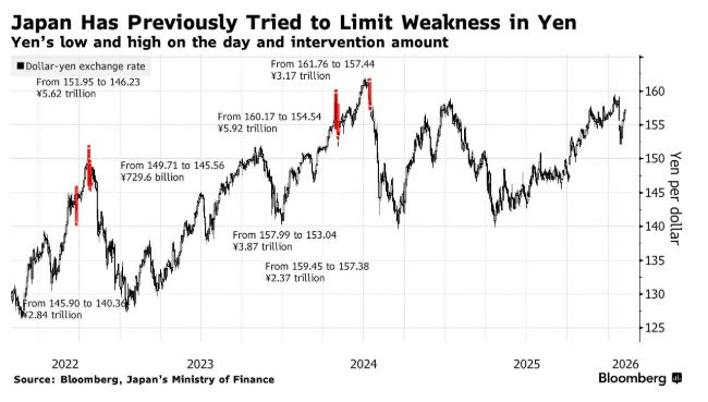 1月23日,因有报道称纽约联邦储备银行进行了利率核查,日元曾一度大幅走强。但此后,在美国财政部长斯科特·贝森特表示美国“绝对没有”干预外汇市场后,日元再次走弱。高市早苗(Takaichi)关于疲软的货币对出口行业来说可能是一个重大机遇的言论,也加剧了日元近期的下跌。