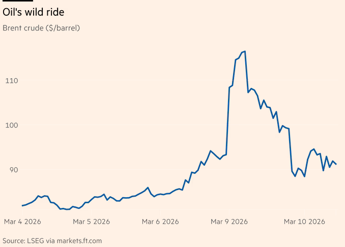 因海湾地区冲突升级,石油市场(周末休市)最初大幅上涨,此前英国《金融时报》周日报道称,沙特阿拉伯和阿拉伯联合酋长国已成为最新宣布减产的出口国。但随后价格大幅回落,先是由于各国政府考虑释放紧急石油储备的消息,后是由于唐纳德·特朗普总统宣布战争“非常彻底”。