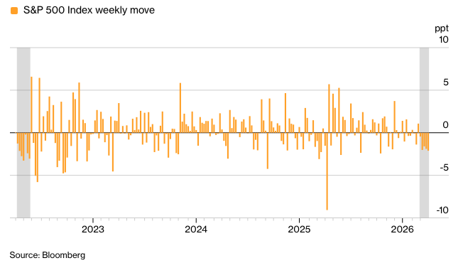 标普500指数正朝着自2022年以来最糟糕的月份前进,而纳斯达克100指数则比10月份的纪录低12%;周五,它突破了表明技术性调整的门槛。这场暴跌是由对中东战争导致油价飙升可能扼杀经济增长并重新点燃通胀的担忧引发的。