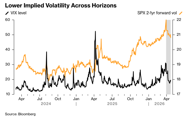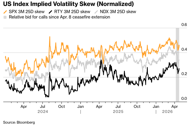 不仅仅是股票市场的仓位发生了变化,从而开启了新的对冲机会。 在利率市场,在美国和以色列与伊朗达成停火协议后,投资者现在正在抛售更多的波动性。